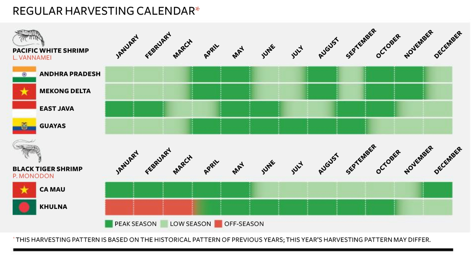 Right now is almost end of the peak harvesting season of 1st crop, so I think the prices of Vannamei could go up a bit in coming weeks but not increase much because the pandemic is still happening complicatedly and potential of demand for end year holidays is not clear for sure. Not the same every year, the prices of vannamei normally go up sharply in months of end year, but this year 2020 many shrimp experts feel very confused to predict how the shrimp market moves!
