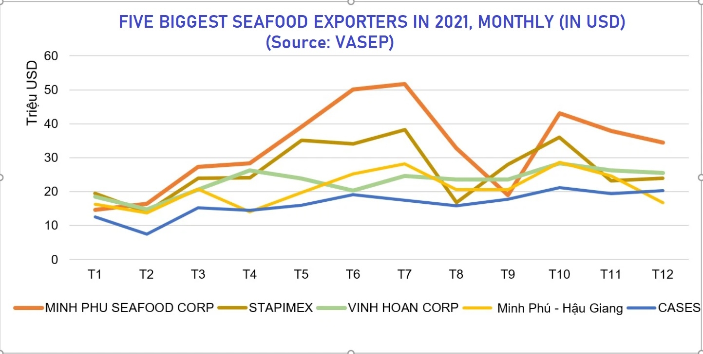 TOP 5 SEAFOOD EXPORT ENTERPRISES IN 2021, MINH PHU CONTINUES TO HOLD THE THRONE